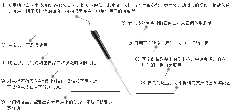 刺入土壤、沉積物、動(dòng)物組織、傷口、血管、植物組織等測(cè)量孔隙水中的濃度,針電極