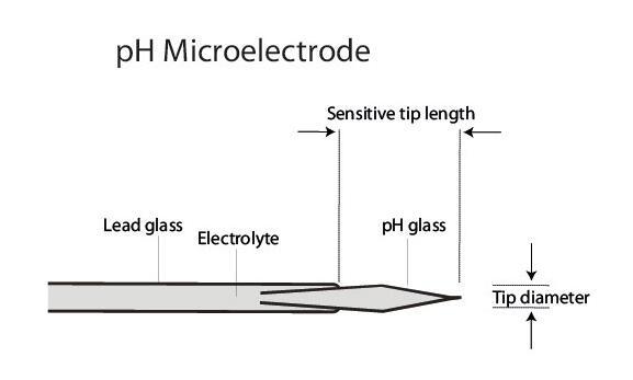氫離子和pH微電尖端鈉玻璃上的鈉離子交換產(chǎn)生電流,測(cè)量?jī)?nèi)部電解液和參比電之間的電位可以獲得精確的pH值。