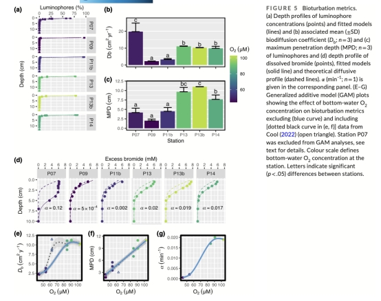 意義:Db和α在氧氣低于80μM時驟降,表明生物混合與灌溉能力非線性喪失,影響沉積物氧化還原屏障。