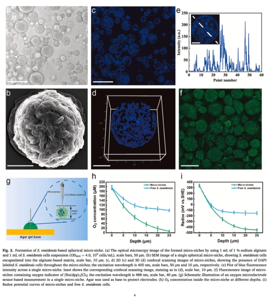 氧氣濃度分布(圖2h):使用丹麥Unisense微電極測量微生態(tài)位內部的氧氣濃度,發(fā)現(xiàn)25μm深度處氧氣濃度趨近于零,表明內部形成缺氧環(huán)境,激活了氫酶活性。