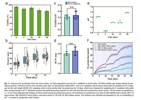 該微環(huán)境生物相容性優(yōu)異,支持S. oneidensis持續(xù)產(chǎn)氫30天,為微生物-非生物雜化系統(tǒng)在綠色生物制造中的應用提供了新策略。