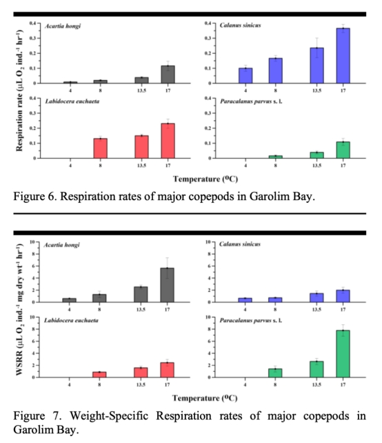 測定黃海Garolim灣優勢橈足類的呼吸速率;