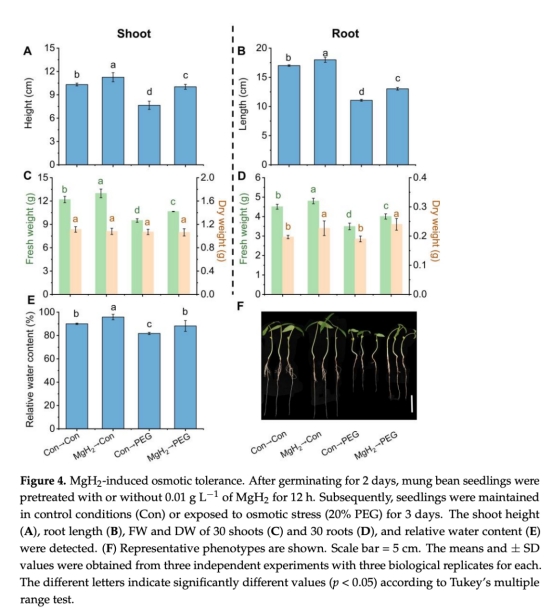 意義:量化MgH2緩解滲透脅迫導致的生長抑制(如根長增加18.6%)