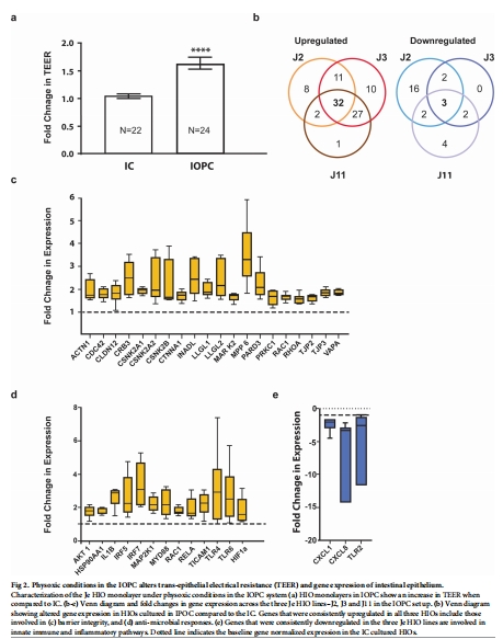 論文開發(fā)了一種名為 IOPC(Intestinal Organoid Physoxic Coculture) 的新型培養(yǎng)系統(tǒng),用于在生理氧條件下共培養(yǎng)人腸道類器官(HIOs)與厭氧腸道細菌。該系統(tǒng)通過模擬腸道上皮的氧梯度(頂端厭氧、基底側(cè)生理性低氧),成功支持了如 Bacteroides thetaiotaomicron(耐低氧)和 Blautia sp.(嚴格厭氧)等腸道菌的存活,并揭示了宿主-微生物互作對腸道屏障功能、基因表達和免疫調(diào)節(jié)的影響。