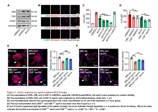 apoVs繼承親代細胞H?S生成能力,且依賴此功能治療SLE(圖7)。