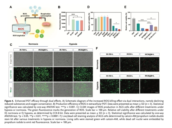 關(guān)聯(lián)PDT增效:節(jié)約的氧氣可直接作為PDT中光敏劑(IR-780)生成ROS的底物,解決了PDT核心限制因素——缺氧問題。