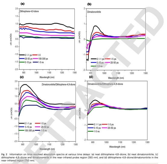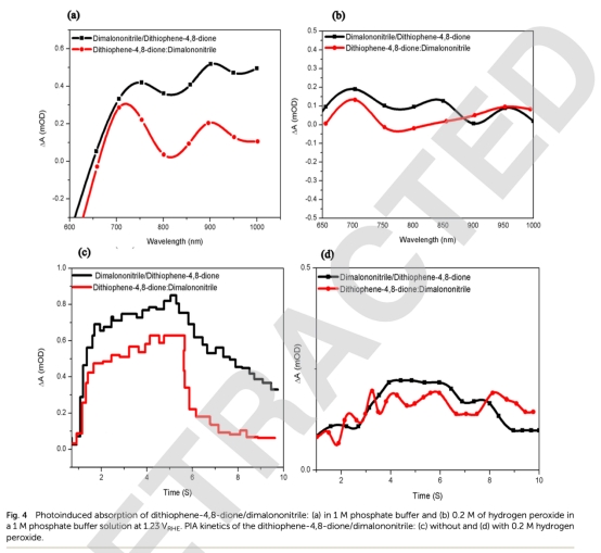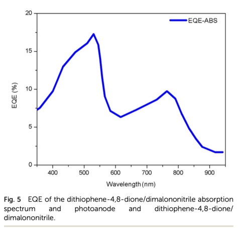 光學(xué)吸收特性: 測量了二噻吩-4,8-二酮和二丙二腈的吸收系數(shù)(圖1)。意義:確定材料的光捕獲能力,為選擇激發(fā)波長和理解光生電荷產(chǎn)生提供基礎(chǔ)。