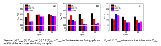 含7%鋰的共析碳酸鹽提升反應(yīng)動(dòng)力學(xué),因熔融促進(jìn)離子擴(kuò)散(圖8b-c),但加劇燒結(jié)導(dǎo)致循環(huán)可逆性劣于純Na?CO?(圖5b, 7)。