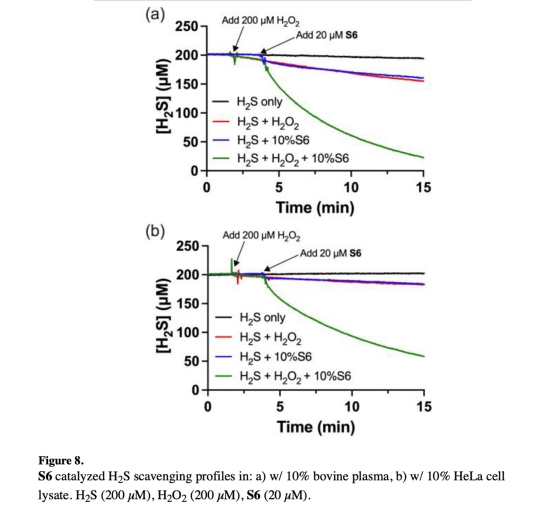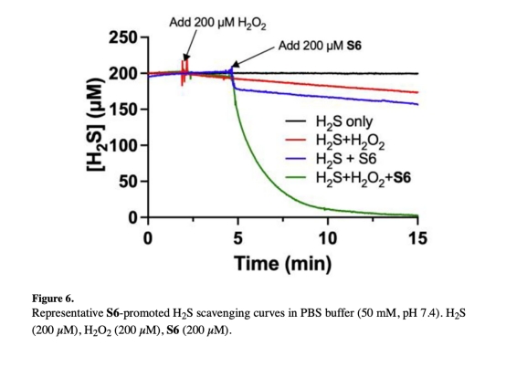 意義:光敏劑(如Eosin Y)聯(lián)合S6實現(xiàn)>95%光誘導(dǎo)H?S清除,提供時空可控的清除策略。