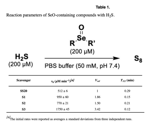 意義:量化硒化合物清除H?S的效率,確定S6在催化劑量(5-10%)下有效,為低毒性應(yīng)用提供依據(jù)。
