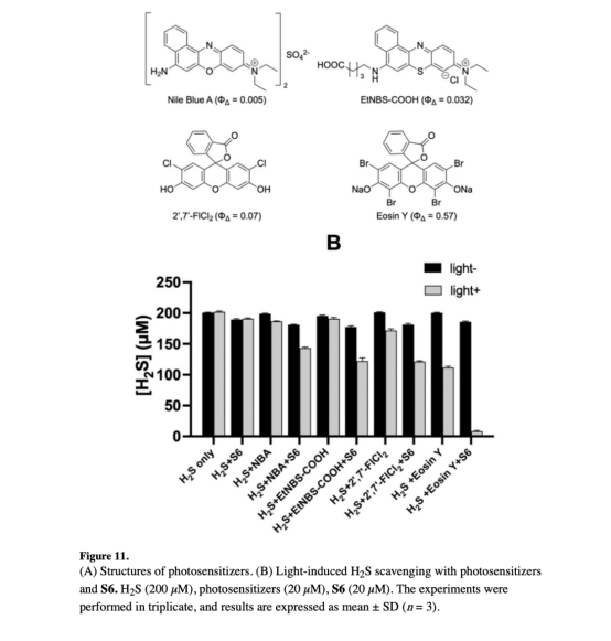 光敏劑(Eosin Y)聯(lián)合S6實現(xiàn)光控H?S清除,為精準(zhǔn)調(diào)控提供新工具。