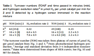 表1:基于Unisense數(shù)據(jù)的產(chǎn)氫速率(μmol H?/min/μmol cat)和TON。