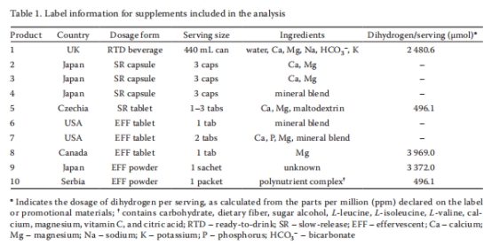 測試10種市售產(chǎn)品(4種緩釋膠囊/片劑、5種泡騰片/粉劑、1種罐裝飲料),來源涵蓋多國品牌(日本、美國、加拿大等)。