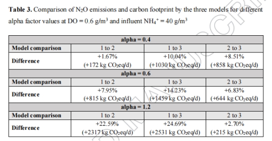 模型選擇顯著影響排放預測:在溶解氧(DO)為0.6 g/m3時,模型間差異達10-16%;池深增加時差異擴大至14-26%。