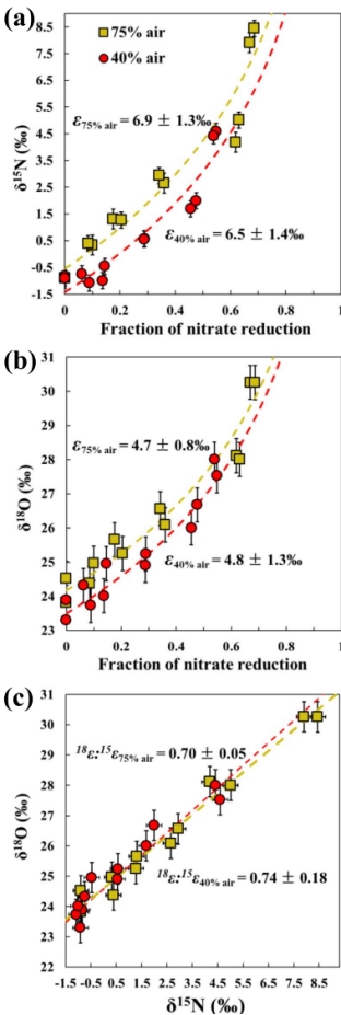 闡明環境因素影響:探究初始硝酸鹽和氧氣濃度對N-O同位素分餾的調控機制。