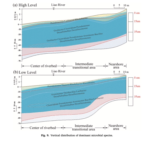 功能菌豐度(圖10-12):反硝化菌(Pseudomonas)在近岸區枯水期增加,鐵錳還原菌(Geobacter)在河心區減少。
