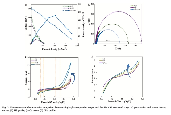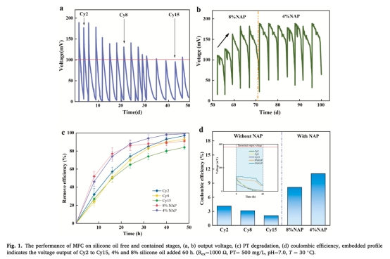 意義:量化硅油對(duì)MFC能量輸出的增強(qiáng)效果,證明NAP可突破疏水性污染物處理的能量回收瓶頸。