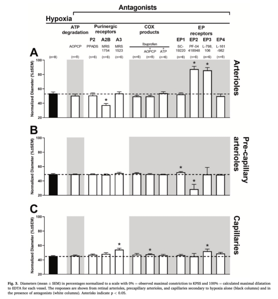 闡明嘌呤(ATP/腺苷)和前列腺素在視網(wǎng)膜缺氧性血管擴(kuò)張中的角色。