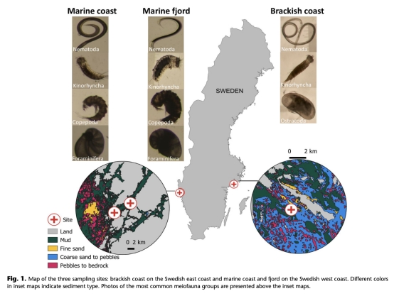 采樣:在波羅的海(半咸水,鹽度6)和斯卡格拉克海峽(北海,鹽度33,包括一個海岸站點和一個峽灣站點)的泥質沉積物區域采集樣品(圖1)。