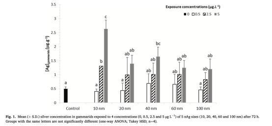 數據:10 nm nAg暴露組(5 μg/L)銀累積量較對照組高6倍,而100 nm組無顯著累積。
