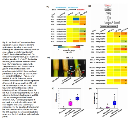 研究對象:深水稻(Oryza sativa)在洪水脅迫下形成兩種水生不定根(AR1和AR2)的遺傳與生理機制。