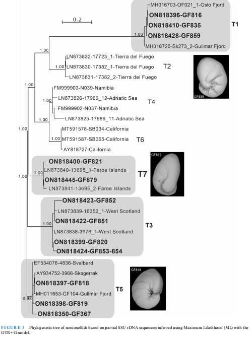 物種鑒定突破:單細胞條形碼技術(圖2)鑒定出傳統形態(tài)學未識別的隱存種(如 Nonionella 新分支T7,圖3)。