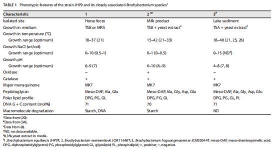 新種確立:JHP9為Brachybacterium equifaecis sp. nov.,模式菌株KCTC 49746T。