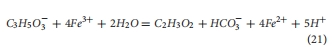 Fe(III):乳酸比 Ferrozine法 確定厭氧代謝化學計量比(1.46±0.15),修正傳統(tǒng)模型(式21)的預測偏差 結(jié)果3.3節(jié), 式16