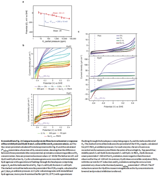 超高親和力:Huc的Km=129 nM,可氧化低至31 pM的H?(圖1a,d),遠超傳統氫酶(Km>500 nM)。