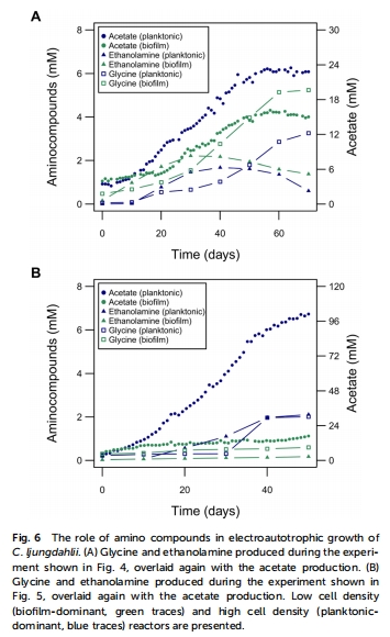 產物多樣性:首次在MES中發現 甘氨酸(0.39 g/L)和乙醇胺(0.14 g/L) 的顯著積累(圖6),拓展了CO?轉化產物譜。