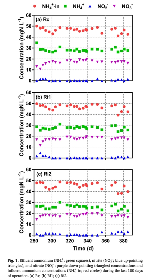 長期運行監(jiān)測:持續(xù)385天,監(jiān)測硝化速率、氧分壓、N?O排放及TOrCs去除(圖1-2,表1)。