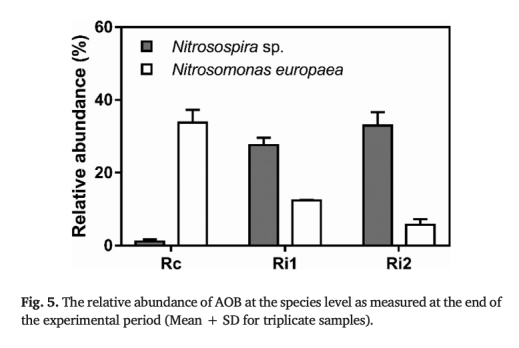 數(shù)據(jù):間歇曝氣富集Nitrosospira(Ri2占AOB的33%),連續(xù)曝氣以Nitrosomonas europaea為主(34%)。