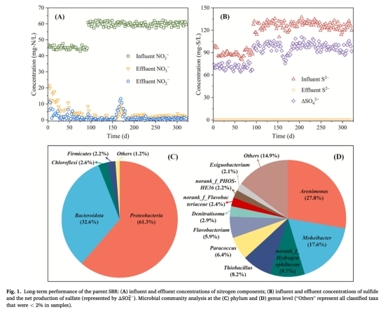 長期培養硫氧化菌(SOB):在序批式反應器(SBR)中富集SOB(優勢菌為Arenimonas、Thiobacillus等),穩定運行320天(圖1);