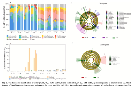 水體中脫硫菌門豐度(Desulfobacterota)及脫硫弧菌屬(Desulfovibrio)變化。