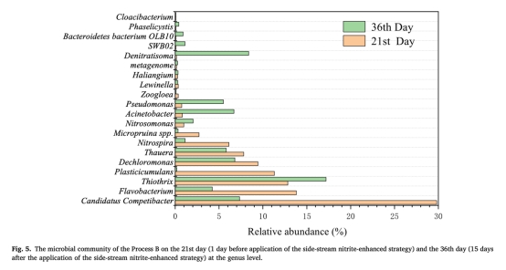 數(shù)據(jù):NOB(Nitrospira)豐度從6.13%降至1.13%,DPAOs(Pseudomonas/Acinetobacter)豐度從0.81%/0.74%增至6.69%/5.48%