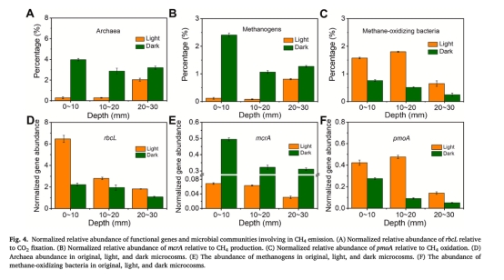 上調rbcL(CO?固定基因)和pmoA(甲烷氧化基因),下調mcrA(產甲烷基因)(圖4D-F)。