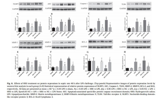 Western blot:HRS降低NLRP3、caspase-1、TLR4蛋白表達(圖8A-D)。