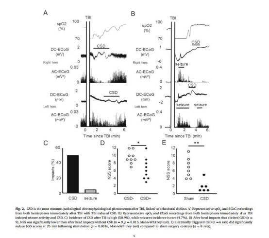 CSD是TBI后繼發(fā)性損傷的關(guān)鍵媒介:通過誘發(fā)線粒體ROS暴發(fā)和鈣超載,破壞NVU功能。