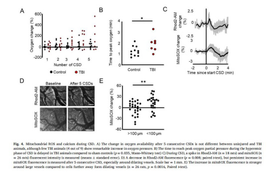 線粒體功能障礙導(dǎo)致血管調(diào)節(jié)異常,表現(xiàn)為CSD后血管收縮加劇和局部腦血流(CBF)減少。
