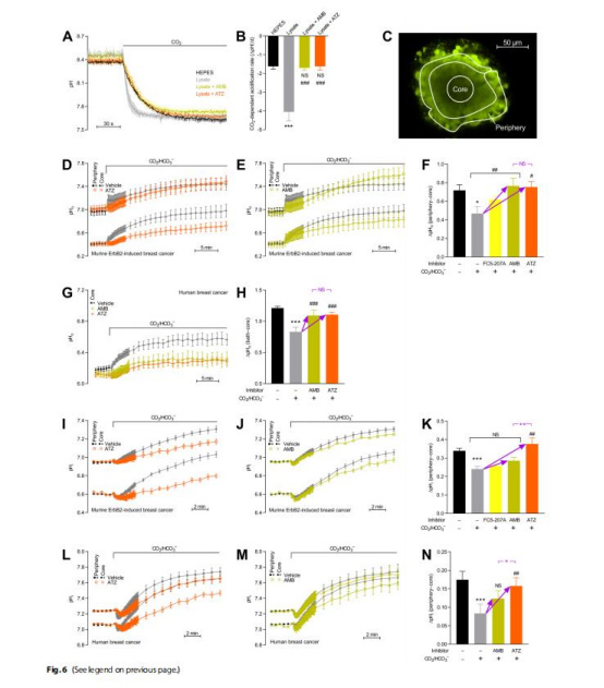 ATZ使核心pH降至6.8,證明CAs是維持堿性微環境的關鍵。