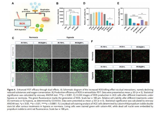 協同增效PDT:光敏劑IR-780在富氧環境下產生更多活性氧(ROS),同時還原性物質的減少使ROS更有效殺傷腫瘤細胞。