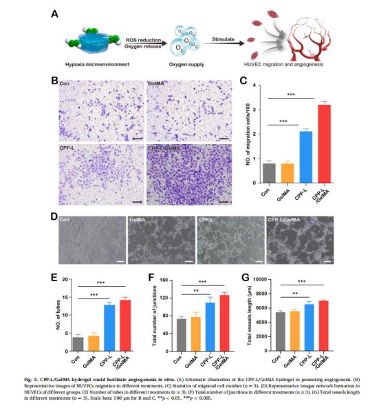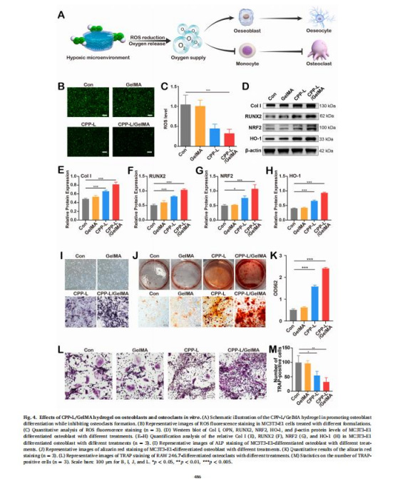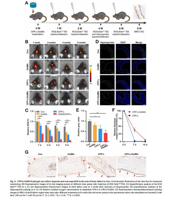 材料創(chuàng)新性:CPP-L/GelMA是首個集成ROS清除與智能供氧的骨修復水凝膠,可動態(tài)響應微環(huán)境變化。