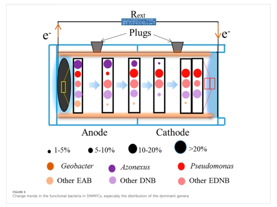 意義:揭示空間分布規(guī)律——雙功能菌全域分布,厭氧菌受限陽極區(qū),兼性菌擴散至陰極。來源圖4、圖5。