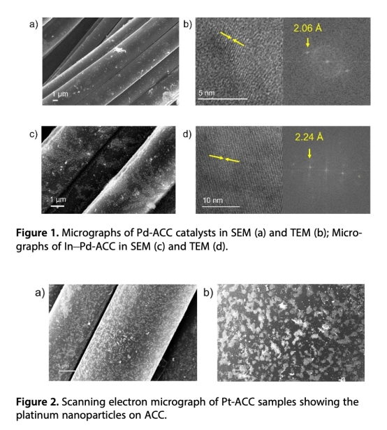 電極形貌和組成數(shù)據(jù):SEM和TEM圖像顯示In-Pd和Pt納米顆粒尺寸(10-100 nm)及分布(圖1a-d,圖2)。意義:確認(rèn)催化劑成功負(fù)載,納米結(jié)構(gòu)增強(qiáng)活性位點(diǎn)暴露,提高NO?RR效率。來源圖1、圖2。
