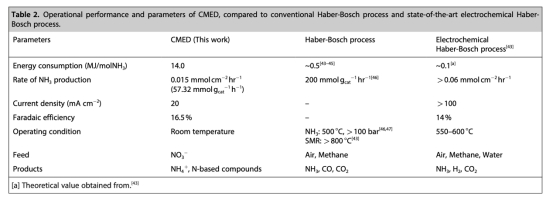 對(duì)比分析:與Haber-Bosch工藝及其他電催化系統(tǒng)比較性能參數(shù)(表2,表3),評(píng)估實(shí)際應(yīng)用潛力。