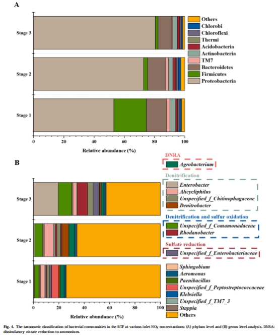 微生物機(jī)制:高NOx濃度富集反硝化菌(如Enterobacter)和NR-SOB(如Rhodanobacter),促進(jìn)NOx還原與S?生成(圖4)。