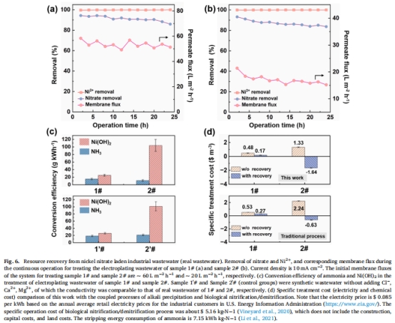 資源回收效率:氨15.1±1.9 g-NH?/kWh,鎳24.9±2.4 g-Ni/kWh(圖6c)。