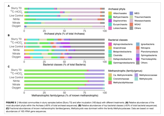 微生物機制:利用13CH?標記的脂質穩定同位素探測(圖4)和16S rRNA測序(圖5),鑒定活躍甲烷氧化菌及其碳同化能力。