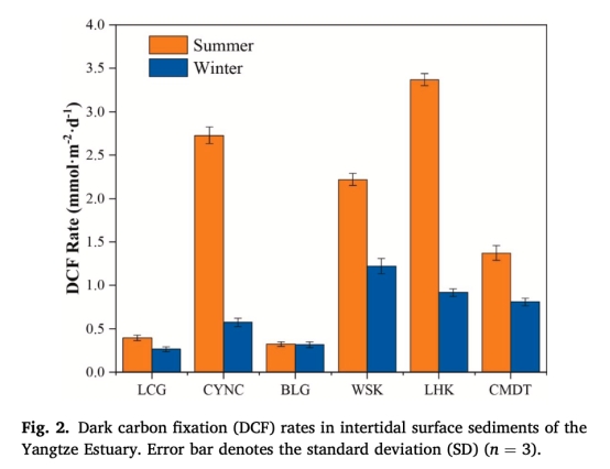 DCF率(圖2):夏季0.32–3.37 mmol C m?2 d?1,冬季0.27–1.22 mmol C m?2 d?1。