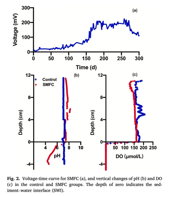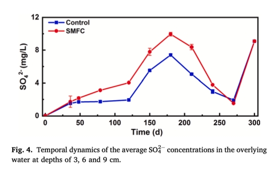 意義:SMFC組上覆水SRP峰值比對(duì)照組低58%(第270天),孔隙水SRP最大降幅達(dá)40%(第120天),證明SMFC抑制磷釋放。